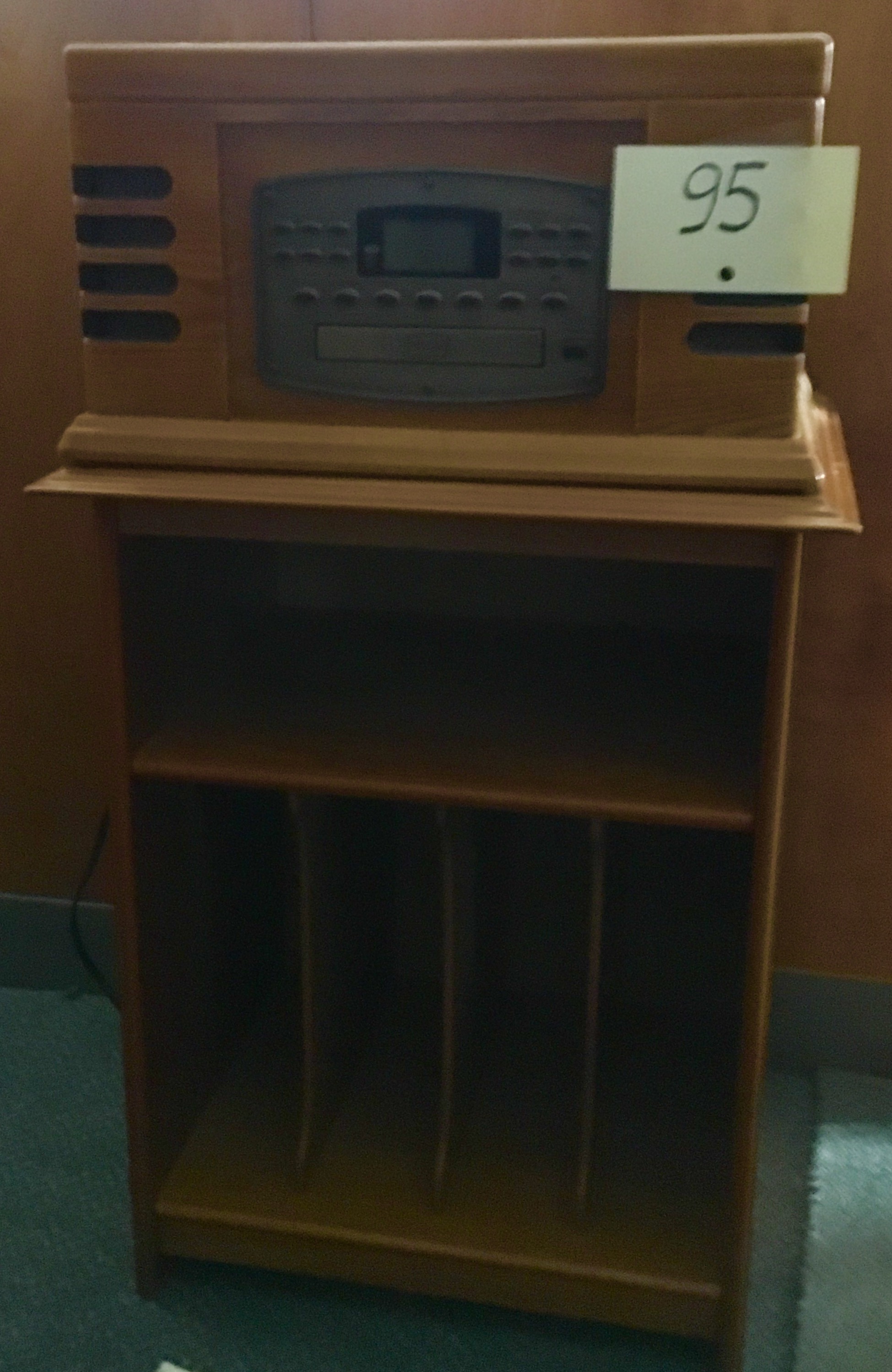 Lot 95 Vinyl, cassette, CD, radio in 2-pc wood cabinet (19x34x15)