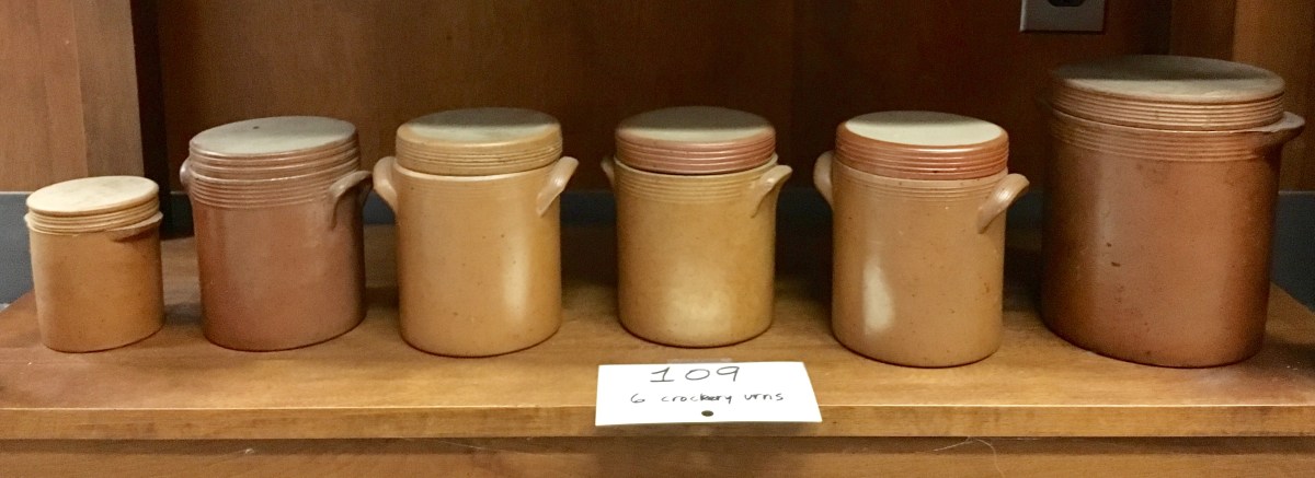 Lot 109 Six matching crockery jars