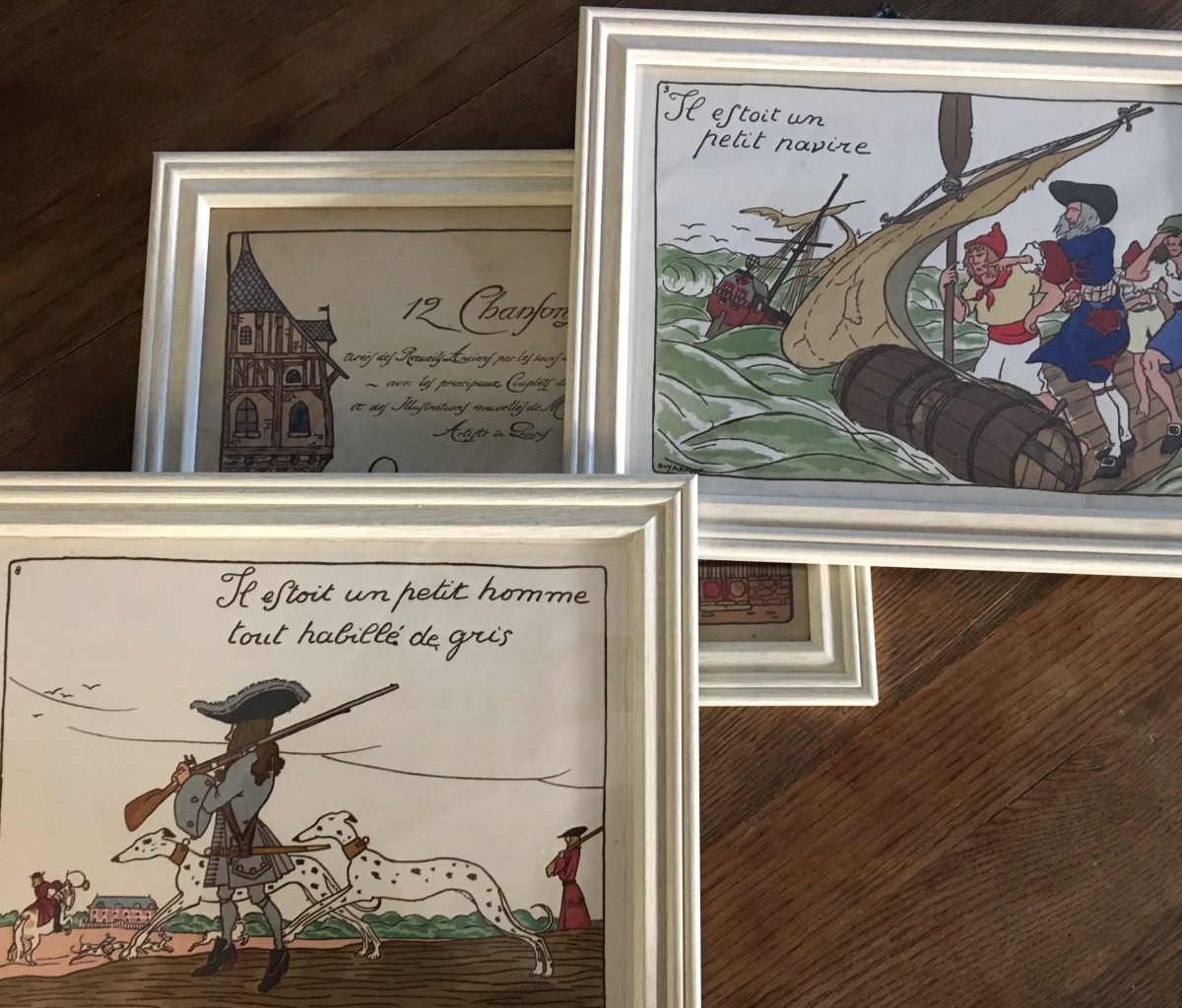 Lot 129 Three framed traditional French songs (15×12) by Guy Arnoux