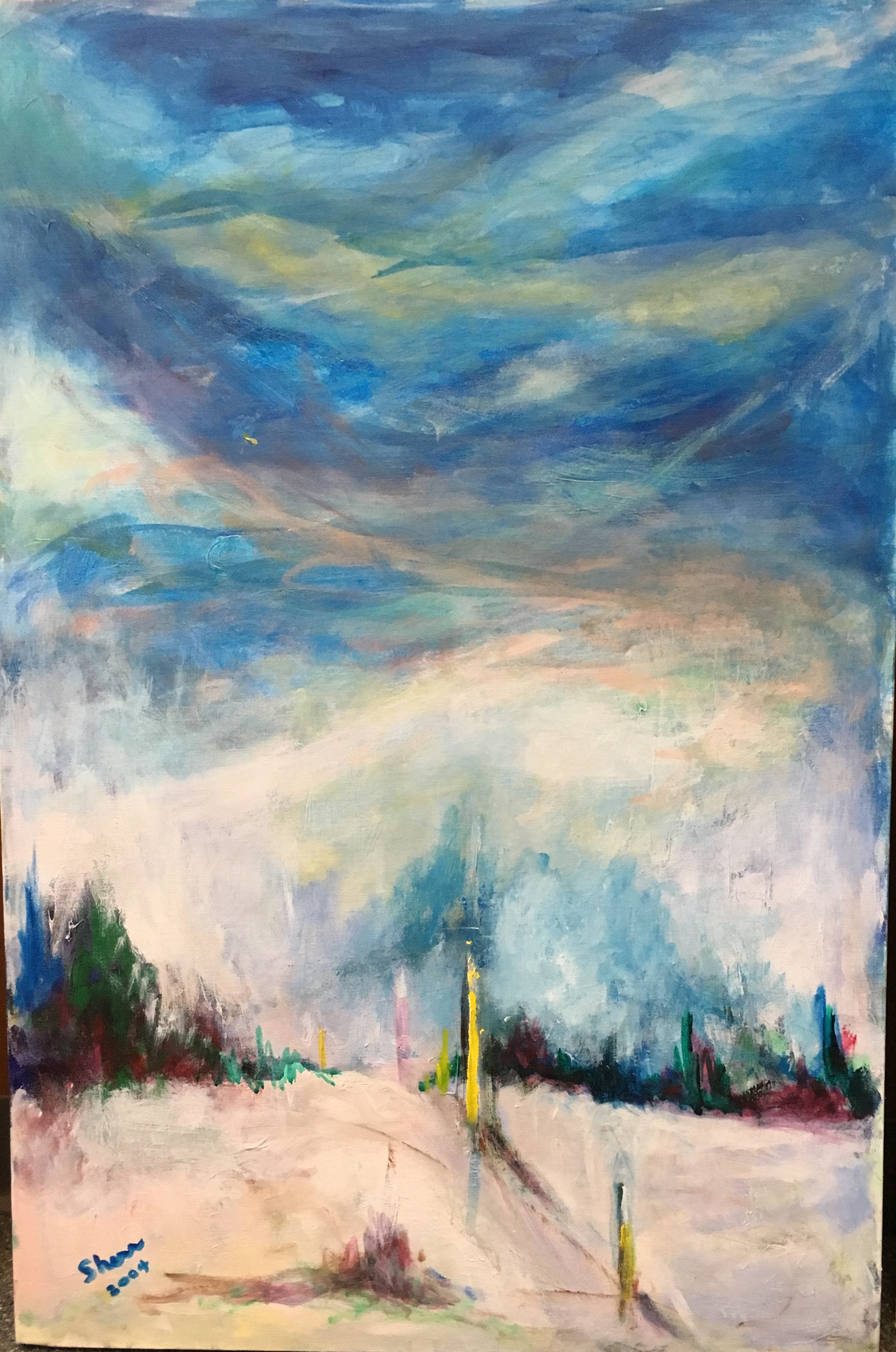 Lot 158 Bridge-Skyscape oil (24×36) by Claire Sherr