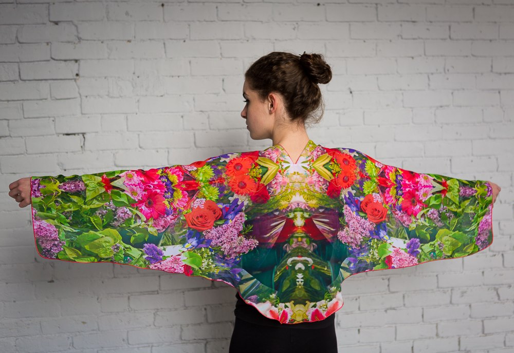 Based on Nona Hatay’s Natural Illusion Series (1998-2008) in which her photographs of nature are mirrored– the effect is positively psychedelic and kaleidoscopic. She designs and prints dresses, drapey tops, ties, and vests for men and women. Her work has been exhibited and sold in New York City at JULIE: Artisan’s Gallery on Madison Avenue, the top Art to Wear gallery for over forty years. Accompanying the clothes will be some of Hatay’s original photoart and her first design ideas, including the “Clothes Line” exhibit previously displayed at the Holyoke Children’s Museum.