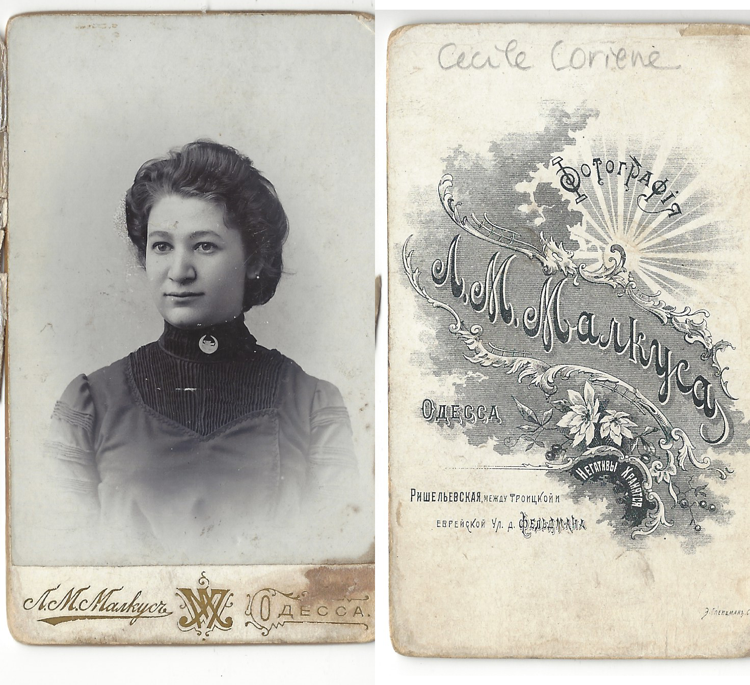 Herschel Coriene, Jane’s great-grandfather. Cécile, one of his five children with Paula Rosenman, would marry Alexandr Triger.Cécile Coriene & Alexandr Triger, at their wedding in 1901.